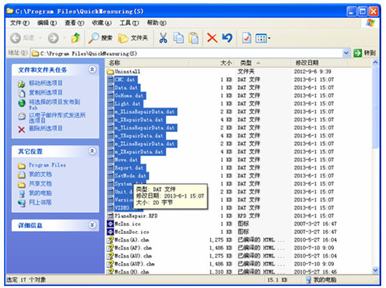③刪除所有類型為dat的文件,重新運(yùn)行QuickMeasuring測量軟件。